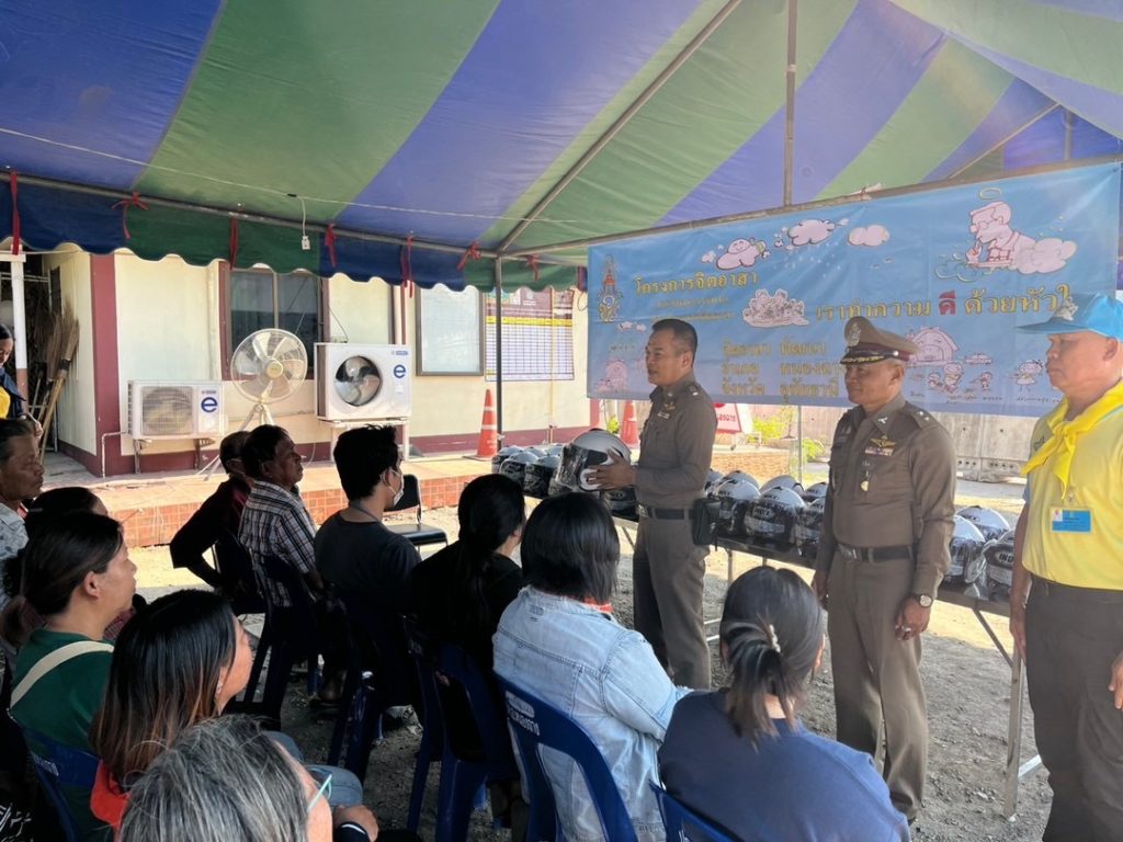 สภ.หนองฉาง วันที่ 30 ธ.ค.67 พ.ต.อ.ประเสริฐ บัวขาวรอง ผบก.ภ.จว.อุทัยธานี พ.ต.อ.ภคิน วรรณศรี ผกก.สภ.หนองฉางพ.ต.ท.ชัยวัฒน์ ไชยฮะนิจรอง ผกก.สส.สภ.หนองฉาง พ.ต.ท.สมหวัง ปานคำ สวป.สภ.หนองฉาง รรท.รองผกก.ป.สภ.หนองฉาง กต.ตร.สภ.หนองฉาง พร้อมด้วย ข้าราชการตำรวจ สภ.หนองฉาง ร่วมอบรมให้ความรู้และมอบหมวกนิรภัยให้แก่ประชาชนตามโครงการจิตอาสาจราจร รณรงค์การขับขี่ปลอดภัย สวมหมวกนิรภัย เพื่อลดอุบัติเหตุจราจรทางบก ในช่วงเทศกาลปีใหม่ พ.ศ.2568 ณ บริเวณศูนย์จราจรสถานีตำรวจภูธรหนองฉาง