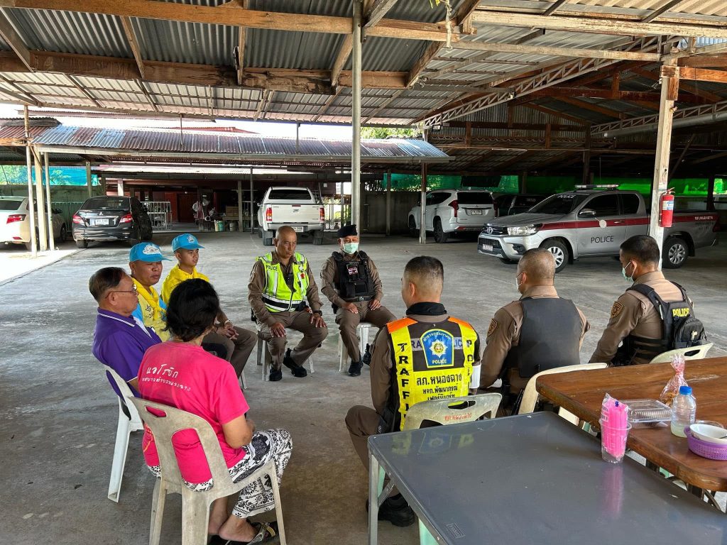 พ.ต.ท.สมหวัง ปานคำ สวป.สภ.หนองฉาง/จิตอาสา 904 พร้อมด้วย กต.ตร.สภ.หนองฉาง ข้าราชการตำรวจ สภ.หนองฉาง เข้าพบปะ เยี่ยมเยียน พูดคุยกับ นายสังวล ทวีผล สมาชิกสภาเทศบาลตำบลหนองฉาง เขต 2 เกี่ยวกับปัญหาภายในชุมชนและสอบถามปัญหาอาชญากรรมต่างๆ ให้ความรู้เกี่ยวกับกฎหมายจราจรและประชาสัมพันธ์เกี่ยวกับการป้องกันอาชญากรรมทางเทคโนโลยี กลโกงของมิจฉาชีพที่ใช้ในการหลอกเหยื่อบนโลกออนไลน์