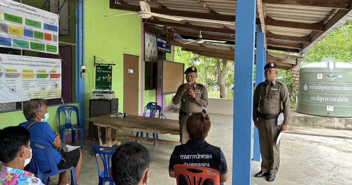 ตำรวจโครงการชุมชนยั่งยืนเพื่อแก้ไขปัญหายาเสพติดแบบครบวงจรตามยุทธศาสตร์ชาติ พ.ศ.2566 และนายสายันห์ พลานามัย ผู้ใหญ่บ้าน ม.3 ต.หนองยาง นายเมธี ยิ้มพะ ผอ.รพ.สต.หนองยาง