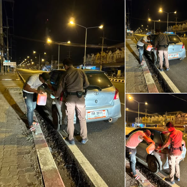 ส.ต.ต.บุญญฤทธิ์ กาหลง สายตรวจจราจร ว.4 ช่วยเหลือเหตุประชาชนขอความช่วยเหลือรถยนต์น้ำมันหมด บริเวณหน้า